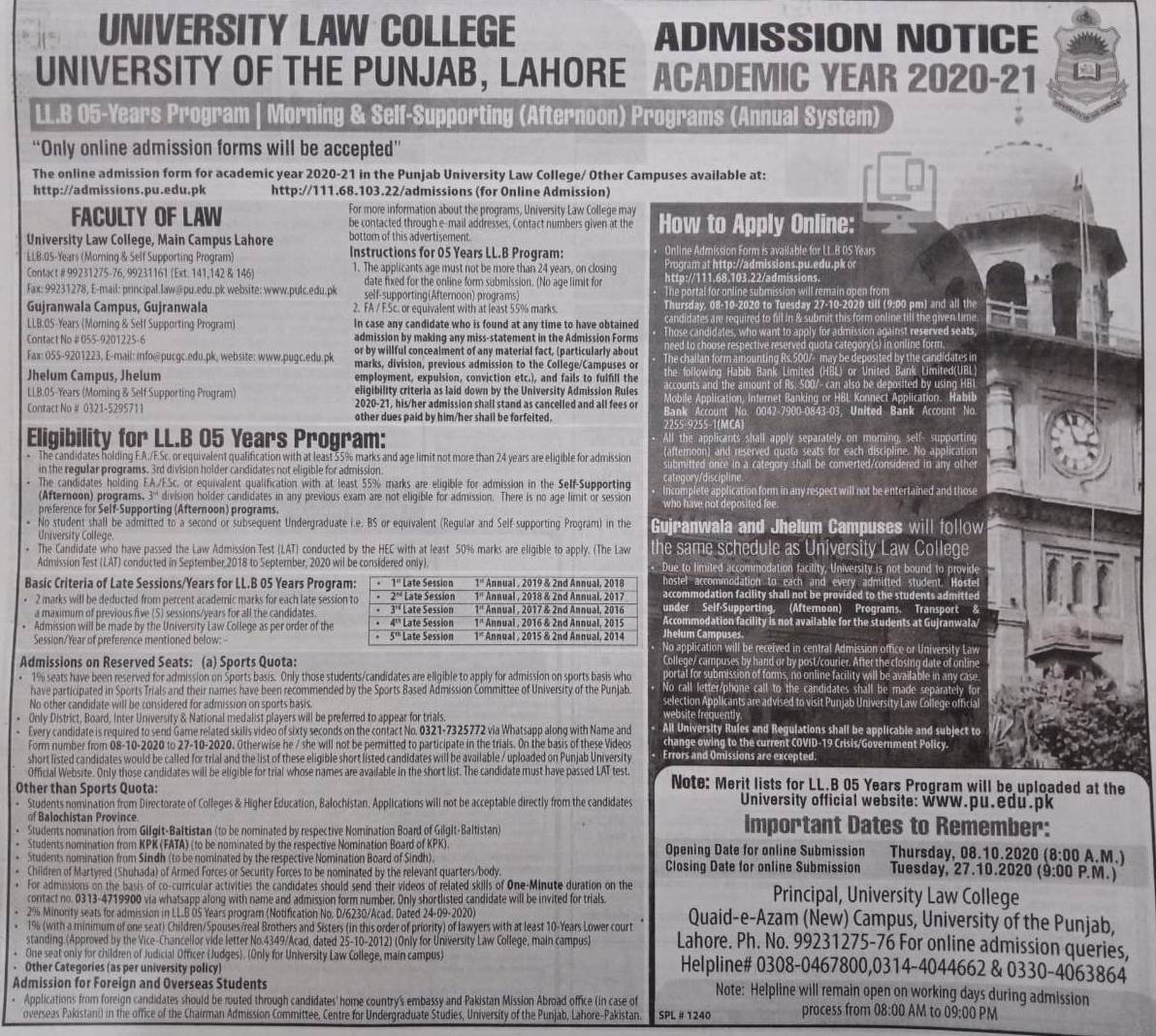 http://admissions.pu.edu.pk